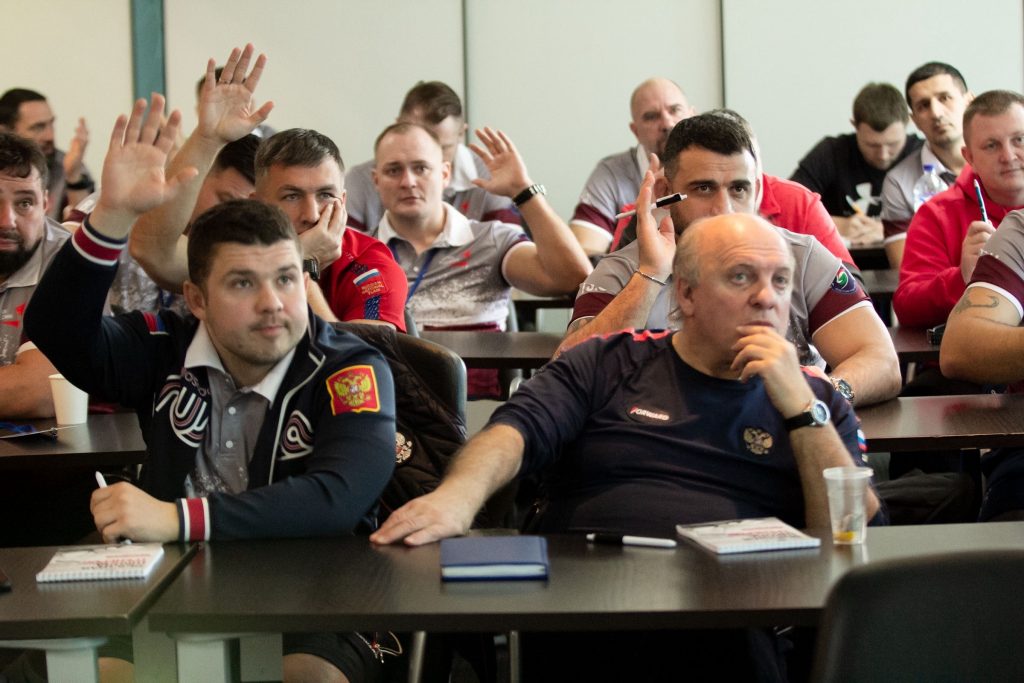 — Очень насыщенная программа с первого дня, — рассказал Сергей Колосов. – Получаем огромное количество информации, причём как теоретической, так и практической. Кроме работы в конференц-зале, наблюдаем за тренировками двух сборных России, которые сейчас находятся в Сочи.